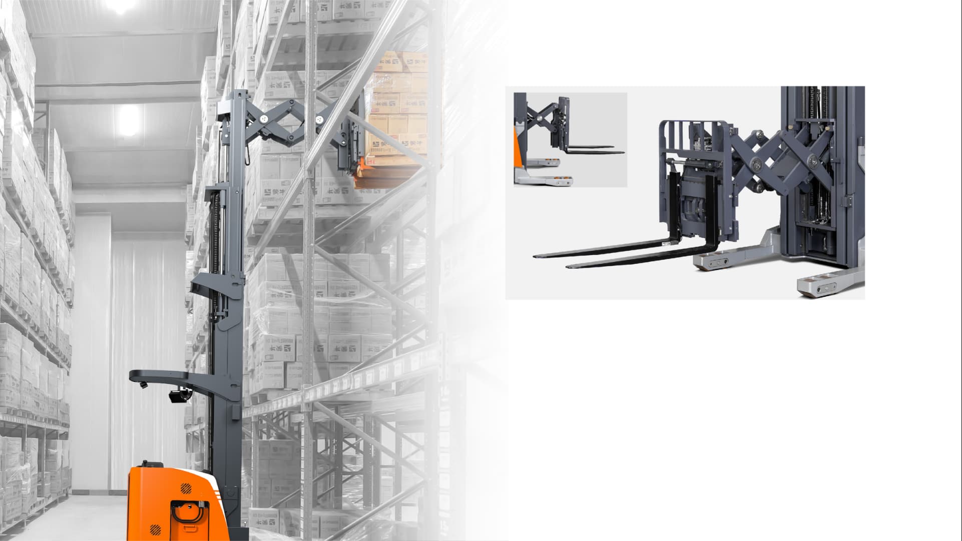El mecanismo de tijera flexible permite un recorrido máximo hacia adelante de 1030 mm y una distancia de movimiento lateral de ±50 mm, abordando fácilmente los desafíos relacionados con la profundidad de apilamiento.