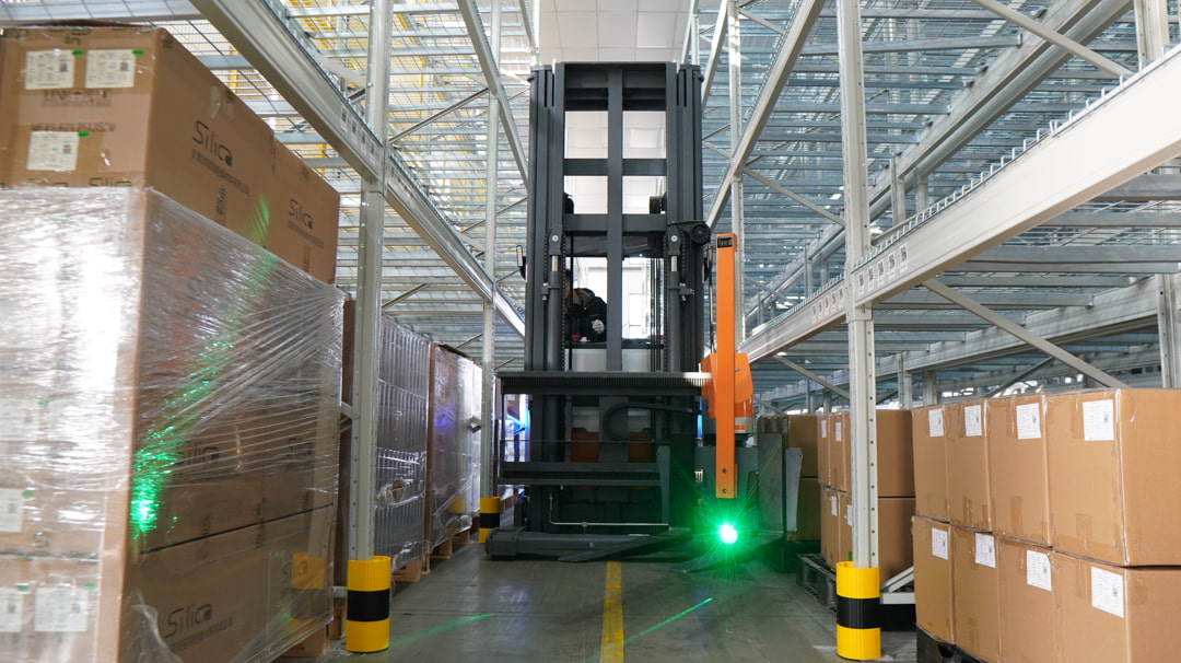 Con un pasillo de trabajo de 1650 mm para un centro de carga de 600 mm, puede gestionar fácilmente diversas situaciones de apilado. Equipado con horquillas giratorias eléctricamente de 180°, el modelo VDSE facilita enormemente la recogida y colocación de mercancías.