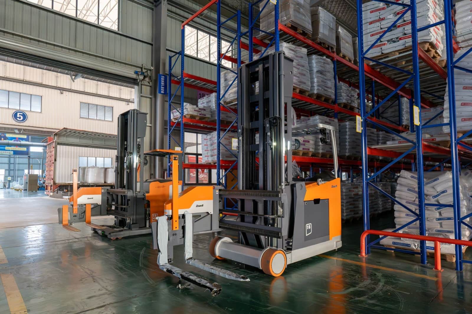 La serie Zowell VDSE apilador eléctrico de tres vías Es una carretilla elevadora ideal para operaciones de apilado en pasillos extremadamente estrechos. Tiene una altura máxima de elevación de 12 m y una carga máxima de 1600 kg. Equipada con horquillas con dirección eléctrica de 180 grados, la carga y descarga de mercancías es más cómoda.