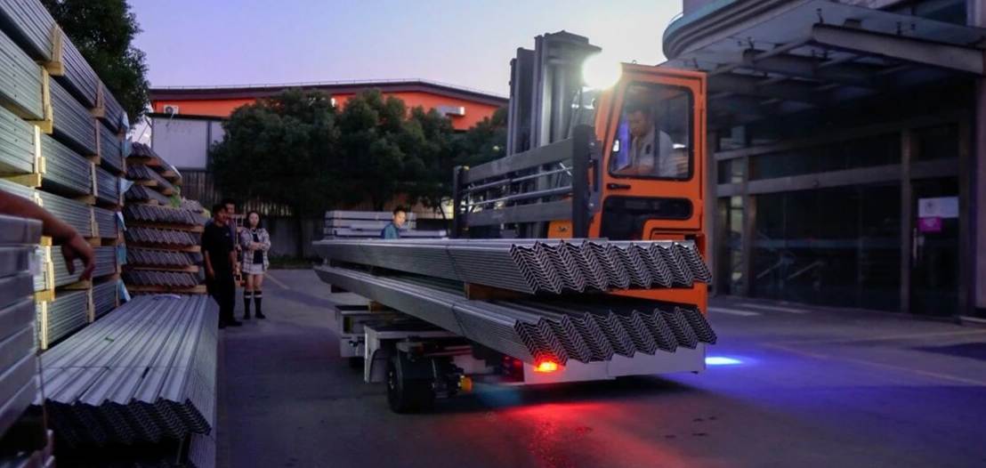 La carretilla elevadora multidireccional Zowell "Crab Power" de 5 toneladas se instaló en una planta de fabricación de equipos fotovoltaicos de propiedad alemana, lo que facilita la manipulación eficiente de materiales de 10 m de longitud.