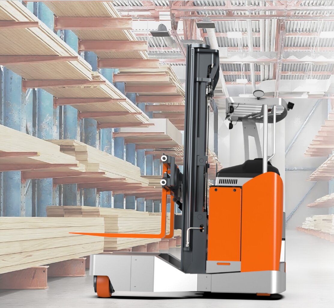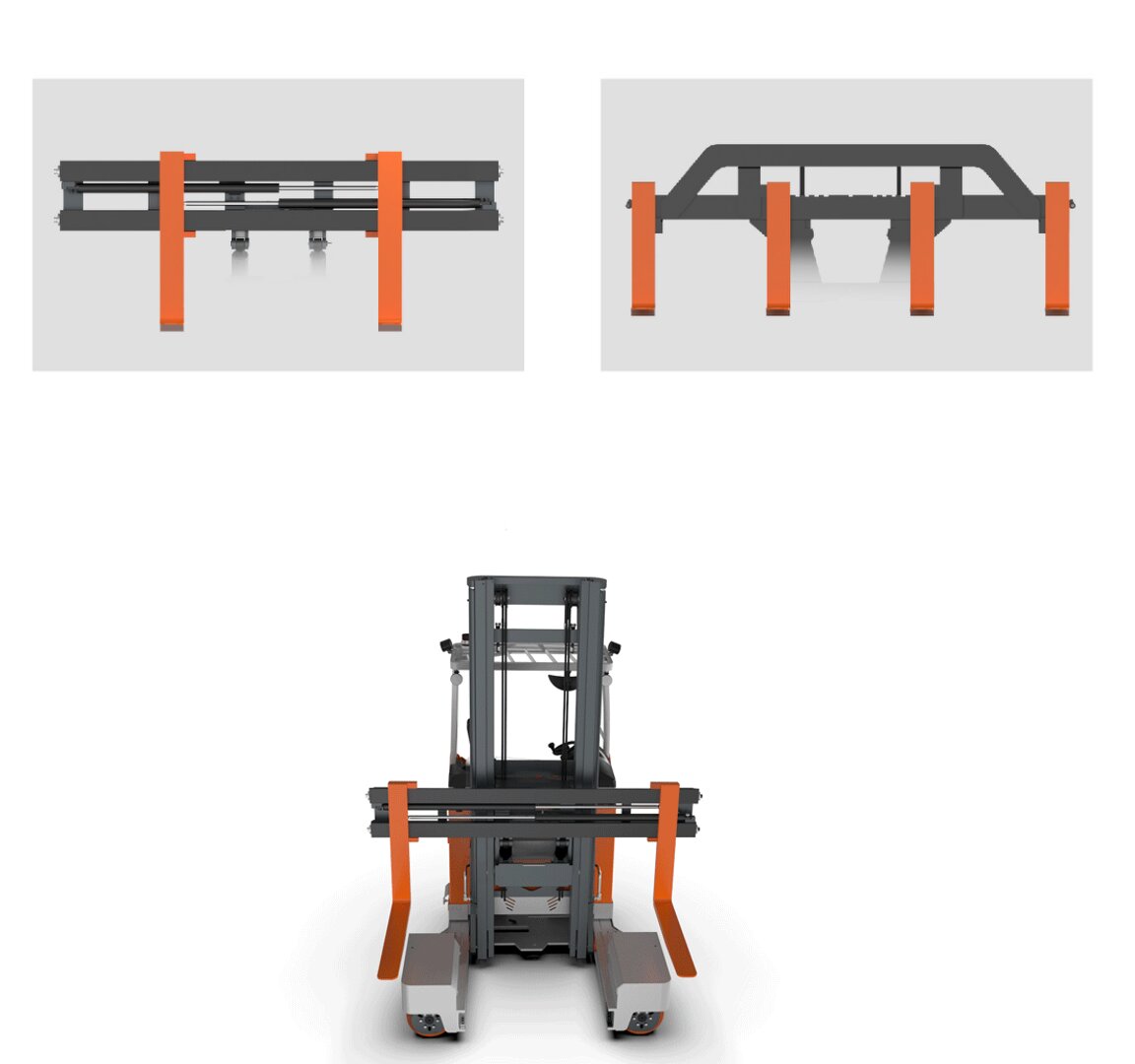 Modo de conducción lateral: Ideal para la manipulación de materiales largos, permitiendo la operación en pasillos tan estrechos como 2300 mm, incluso con cargas de 3 toneladas
